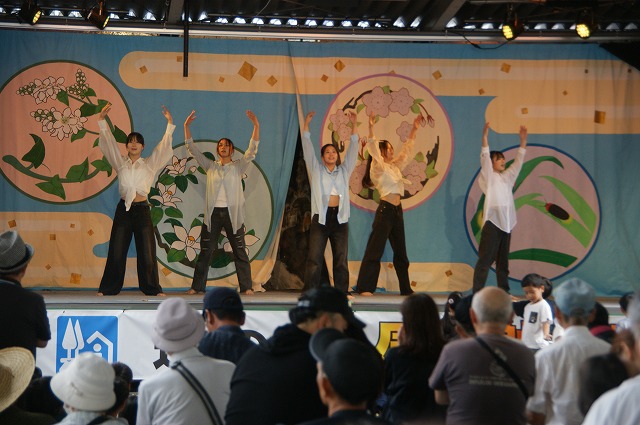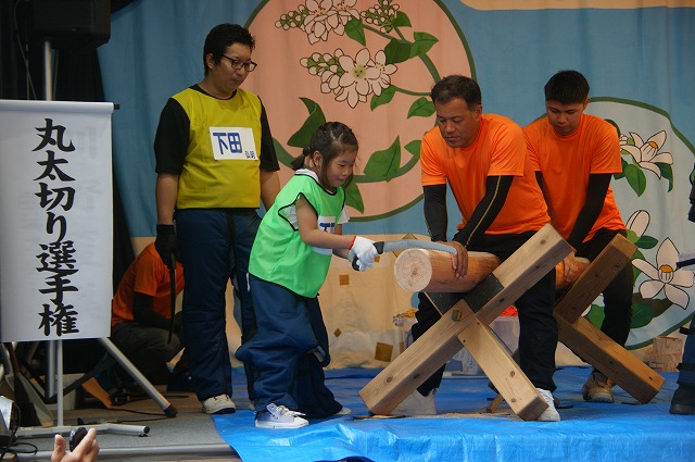 今年のステージイベントも丸太切り選手権に始まり、川野夏美さんの歌謡ステージやみはるさんのものまねステージ、松原神楽社中による石見神楽や益田東高等学校ダンス部によるパフォーマンスと盛りだくさん。