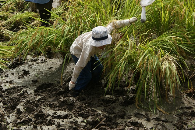 前日までの天気があまり良くなかったので、田んぼの中は少し柔らかく、歩くのが少し大変。