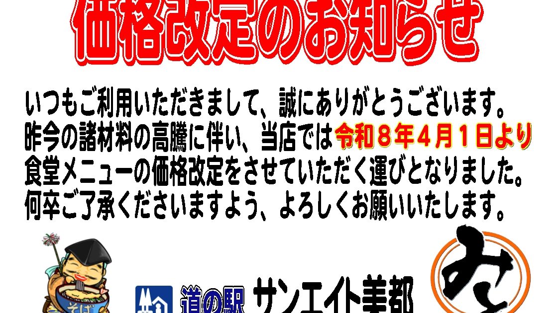 いつも『驛そば』をご利用いただきありがとうございます。 昨今の諸材料の高騰に伴い、令和8年4月1日(水)より 食堂メニューの価格改定をさせていただく運びとなりました。 何卒ご了承くださいますよう、よろしくお願いいたします・・・