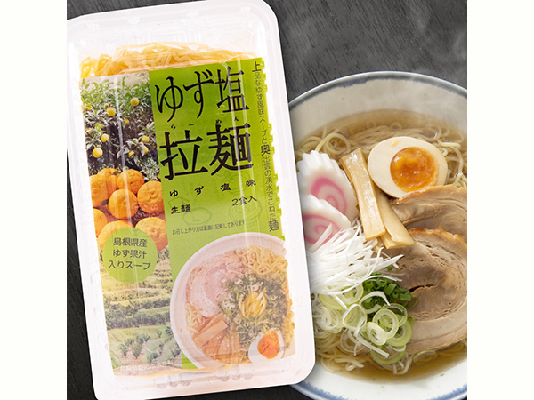 地元美都産のゆず果汁を使用した塩スープに、奥出雲の天然水でこねたこだわりのちぢれ麺を使用しています。爽やかな風味とコクのあるスープに、ちぢれ麺との相性は抜群です。是非一度お試しください。