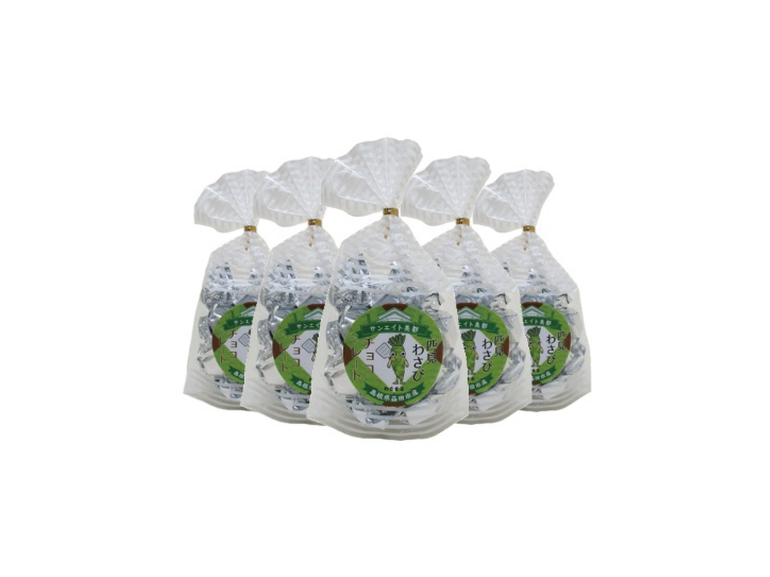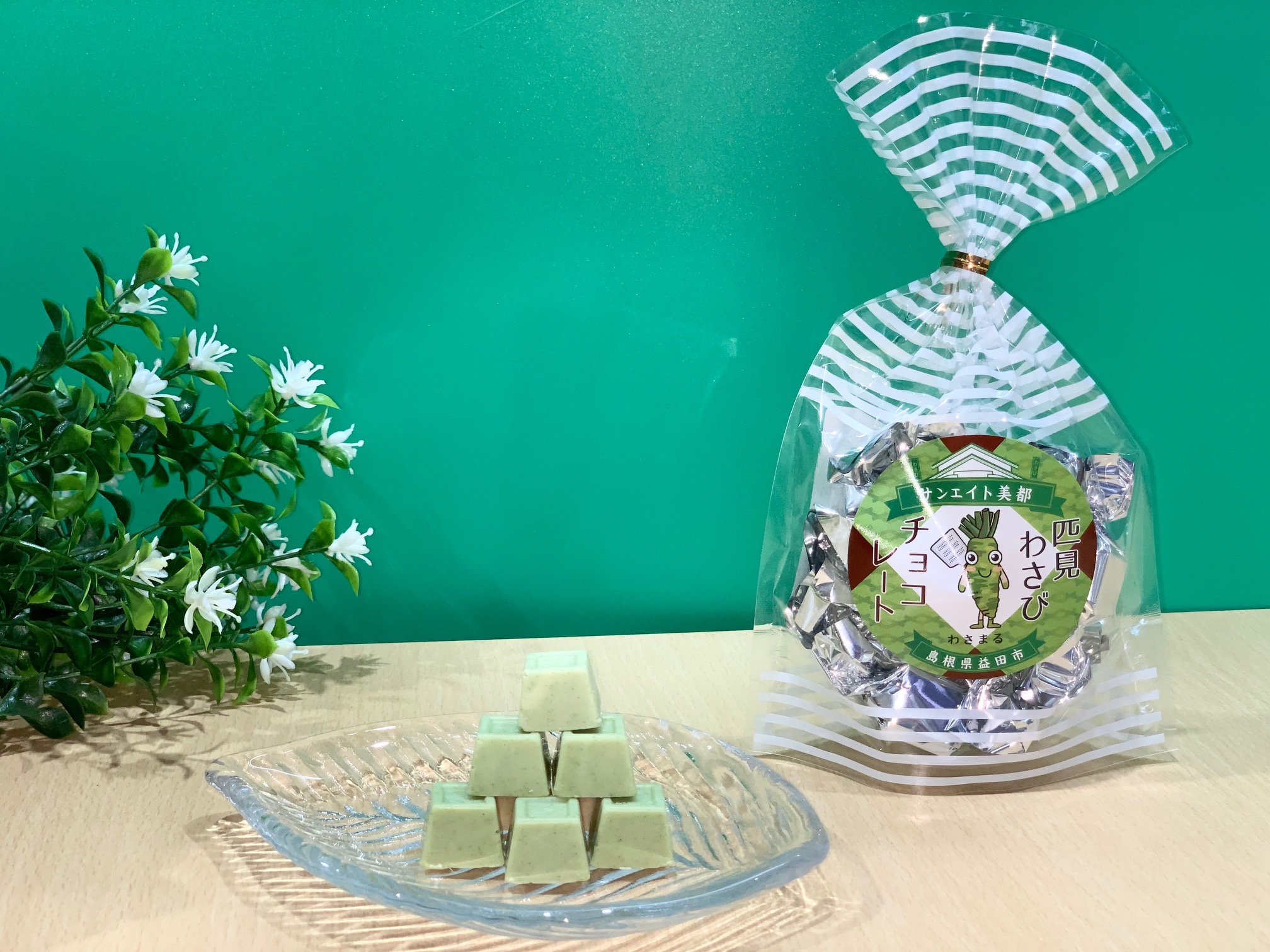 内容量/50gわさび産地として名高い地元益田市匹見町の葉わさびを粉末にして練りこみました。チョコレートの甘さの後にピリッとしたわさび独特の辛さが刺激的な道の駅オリジナルのチョコレートです。
